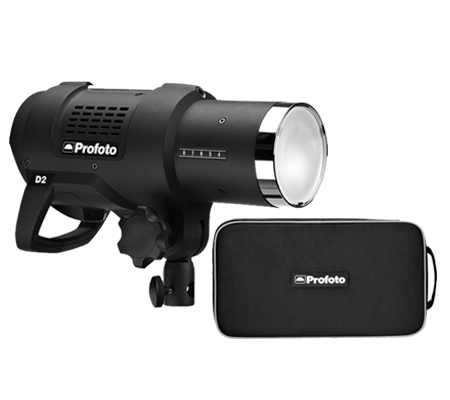 The D2 also features an enhanced, intuitive LCD screen display. Modeling Light, Ready Indicator, Mode, Sync, Channel, and Group are easily selected through the Settings button. The display even flips around the way your iPhone does in case you're working with the head upside down or hanging it overhead. The D2 has a self-seeking multi-voltage (100-240) power supply for worldwide use, too. Profoto has covered so many features on the photographers wish list that you'll wonder what they can come up with next.