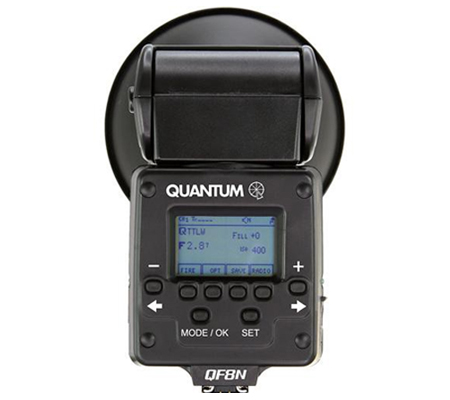 Take control of both on- and off-camera lighting with the bare-bulb Qflash TRIO Flash from Quantum, which features a built-in FreeXwire radio system for wireless operation from up to 500' away and an output rated at 80 Ws. This version is compatible with Nikon's i-TTL metering system and has a guide number of 105' at ISO 100 with the QF60 reflector, which also provides coverage of about 35mm on a full frame camera. The head can tilt upwards 90° as well as rotate both left and right 180° for full bounce functionality.