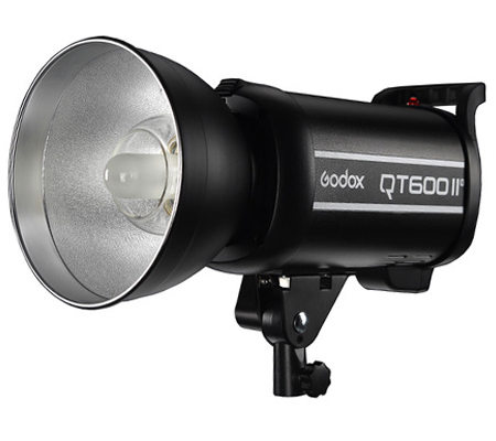 The QT600IIM has built-in 2.4 GHz 32-channel wireless X technology. Using an optional XT16, FT16, XT32, or X1 transmitter you can control selection of HSS and High-Speed modes, modeling light modes, remote triggering and more at distances up to 164'. The head also has S1/S2 slave triggering that makes it easy to work cameras that employ pre-flash. The QT600IIM weighs in at 6.5 lb, making it possible to assemble a kit with 2 or more heads without having to lug a heavy case around. The QT600IIM has a Bowens front accessory mount allowing it to use Godox modifiers as well as accessories from the many manufacturers that use this system. The head has a tilting stand mount and runs on 100 to 120 VAC mains power.