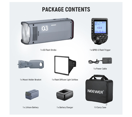 Built-in NEEWER 2.4G wireless system- Pair the included Q-Pro Trigger with the Q3 strobe in the same channel and control it remotely from up to 328'/100m away. The QPRO trigger features 5 groups and 32 channels for easy connection.