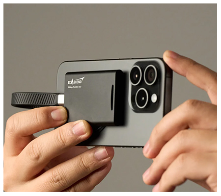 Stay worry-free with Exascend Element Portable SSD that magnetically attaches to your phone, supports ProRes 4K 60fps direct recording on iPhone 15 Pro & Pro Max, and features a slim, sleek design (69.8mm x 45mm x 8mm) at just 1.6oz (45g).