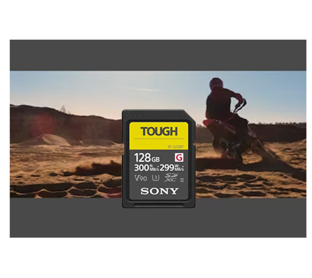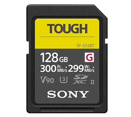 The 128GB SF-G Tough Series UHS-II SDXC Memory Card from Sony features a storage capacity of 128GB and takes advantage of the UHS-II bus to support advanced DSLR functions such as continuous shutter bursts and rapid shooting, as well as RAW and JPEG captures. This card is also well-suited for video capture, including 8K, 4K XAVC S, 60p AVCHD, 3D, HFR, and Full HD video, and can achieve maximum read speeds of up to 300 MB/s and maximum write speeds of up to 299 MB/s. Thanks to its V90 speed class rating, minimum write speeds are guaranteed not to drop below 90 MB/s.