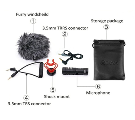 The BY-MM1 microphone offers real plug-and-play design, which means no battery is required to operate the mic. It is built with aluminum construction and includes a shockmount, carrying pouch, and furry windshield. Also, included: 3.5mm TRS to a 3.5mm TRS cable for cameras, camcorders, and audio recorders and 3.5mm TRS to TRRS mini-jack cable for smartphones, tablets or Mac computers.