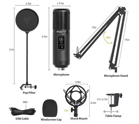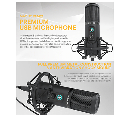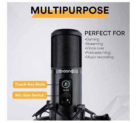 The microphone built-in professional sound process chipset, the sampling rate up to 192kHz/ 24bit and equipped with a USB output for applicate on computer easily. Cardioid polar pattern reduces pickup of sounds from the sides and rear, improving the isolation of the desired sound source. The microphone has studio-quality articulation and intelligibility perfect for singing, podcasting, voice-over, field recording, and home studio recording.