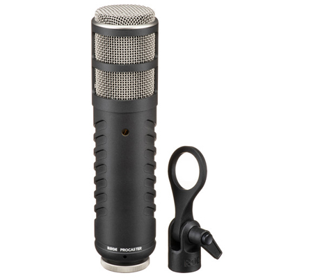 The Procaster Broadcast-Quality Dynamic Microphone from Rode is designed for capturing speech in broadcast radio, voice-over recording, podcasts, and similar applications. It features a tight cardioid polar pattern and tailored frequency response that result in optimum speech reproduction without off-axis noise. The all-metal construction, internal pop-filter, and internal shockmount further minimize handling noise and contribute to the microphone's durability. The package includes a microphone stand mount and a zip pouch.