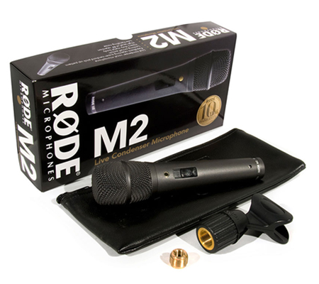 The RØDE M2 is a rugged live-performance condenser microphone designed to provide a full frequency response and premium performance on stage.