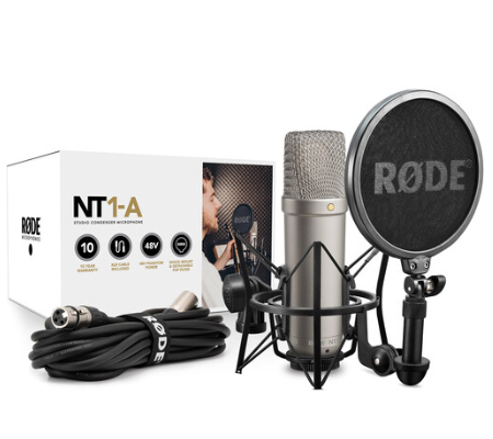 The NT1-A Large-Diaphragm Condenser Microphone from RODE is a 1" cardioid condenser microphone. It has a self-noise level of 5 dB-A, making it a great choice for a vocal microphone, as well as for recording guitars and percussion instruments.