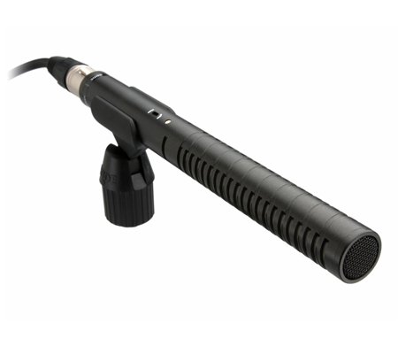 The NTG1 is powered with an external +48V phantom power source; the output is a standard 3-pin XLR male connector.