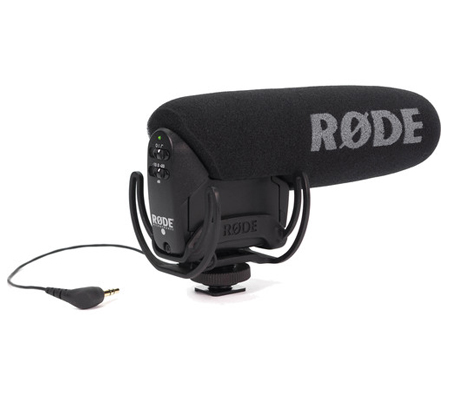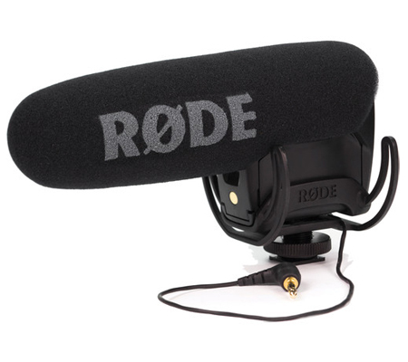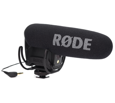 The VideoMic Pro with Rycote Lyre Shockmount from Rode is a supercardioid condenser shotgun microphone that terminates in a 1/8" stereo mini-jack (dual mono), includes an integrated shockmount, and an integrated foam windscreen. It can be used to capture audio for camcorders, DSLR, and portable recorders as a source of primary and reference audio.