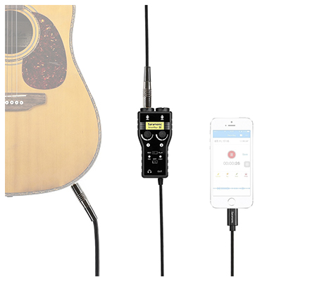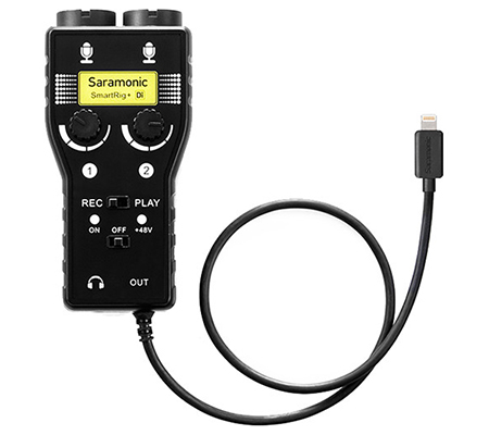 The SmartRig+ Di from Saramonic is a two-channel audio interface that allows you to connect professional microphones or guitars to your iPhone, iPad, and iPod touch device. With a lightning connector output, the interface can be used to record stereo sound or music to your iOS portable device.