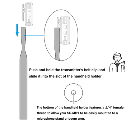 Handheld Transmitter Holder For Blink900, Blink500 ProX, Blink100, Blink Me and more. Ideal for Interviews, Journalism, News Reporting, Speech Applications and more.