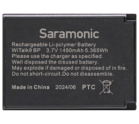 The Saramonic WiTalk9 uses a readily available NB-6LH style battery that can power the master headset for 10 hours, and each remote headset will operate for 13 hours on a single charge.