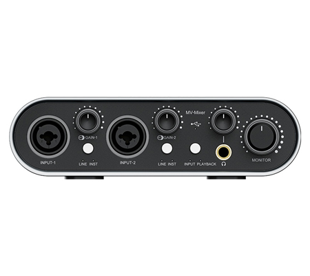 With two XLR-1/4’’ combo inputs and selectable 48V phantom power, the MV-Mixer could compatible with most XLR microphones(dynamic or condenser) and music instruments on the market, provideing mic and line-level signals with clarity and natural tonality. Independent gain controls are provided for each input. The MV-Mixer is capable of recording audio in up to 24bit, 192kHz resolution to ensure high-fidelity and rich detail of your signals.