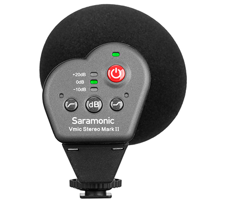 The Saramonic Vmic Stereo Mark II is a on-camera stereo condenser microphone that provides broadcast-quality audio to DSLR, Mirrorless and Video Cameras. The X/Y pattern of the microphone capsules deliver detailed stereo imaging and immersive sound to your videos. The Vmic Stereo Mark II features an input level control