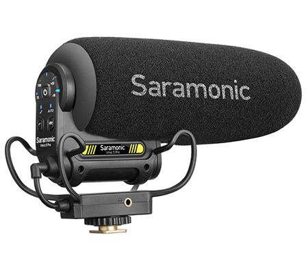 The Saramonic Vmic5 Pro is a super-cardioid on-camera condenser shotgun microphone. Its super-cardioid pickup pattern focuses on the sounds in front while still offering a high level of rear rejection, providing broadcast-quality audio to DSLR, Mirrorless and Video Cameras.