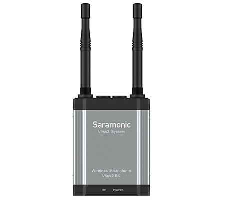 The Saramonic Vlink2 RX is a camera-mountable dual-channel 2.4GHz wireless receiver. It features a high-contrast OLED display and talkback function to the transmitter. The two detachable antennas can be rotated 360° for better reception. The receiver’s output can be toggled between mono and stereo modes. The talkback and monitor function on the receiver allows camera operators to select individually if desired, and communication can be controlled by a mute button.