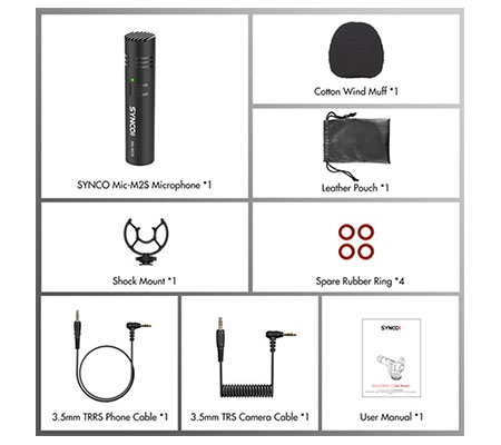 Just 1 AAA alkaline battery is needed to support 90-110 hours (= about 4 days) continued working of the SYNCO M2S. The included wind muff and shock mount made of silicon rubber help minimize the air interference and mitigate unwanted shocks and vibrations. All this makes it the best camera mic for outdoor shooting.