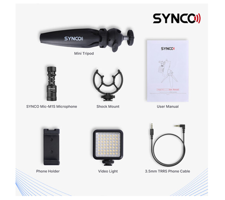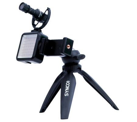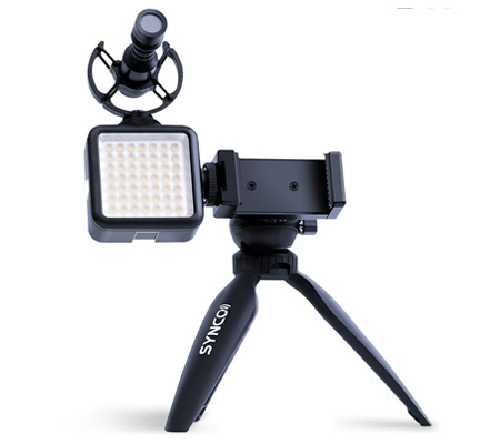 The SYNCO vlogging kit 2 is another pack of every necessary equipment for amazing mobile video making, such as a camera microphone, a fill light, a smartphone holder, and a tripod. It differs from Kit 1 by the light and accessories. Just have a look at the details below and choose the one suitable.