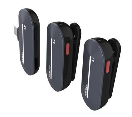 The SYNCO P2 dual microphone for mobile phone has two models to mount to different devices. The P2T with a Type C connector mounts onto Android phones while the P2L goes for iPhone® using a Lightning connector.