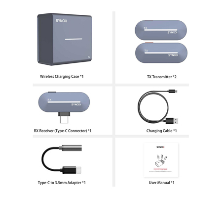 The charging case adopts a drawer style. Tap the case and it will open, then the transmitters will automatically get connected to the receiver. This is the SYNCO ActiveSense™ contact pairing technology, a professional way to save time using this quality dual microphone wireless for phone recording.