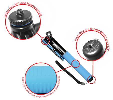 ATTANTA SMP-33 merupakan mini monopod compact oleh ATTANTA. Monopod ATTANTA SMP-33 merupakan monopod ter-compact keluaran ATTANTA. ATTANTA SMP-33 hanya sepanjang 23cm, namun dengan 5 section dapat memanjang hingga 104cm. Dibuat dari aluminium berkualitas, ATTANTA SMP-33 kuat namun ringan ditangan. Dengan finishing matte hitam, ATTANTA SMP-33 terlihat stylish dan cocok digunakan dimana saja. Pegangan dari EVA Material dengan permukaan anti-slip menjaga monopod aman ditangan anda.