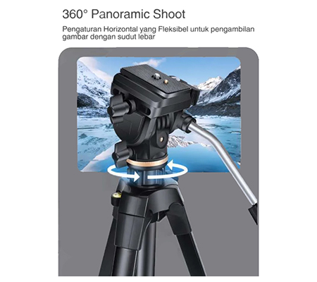 > Ballhead yang bisa digunakan untuk foto dan video. Gagang panning memudahkan untuk melakukan pergerakan video 360°.