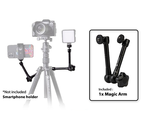 Magic Arm 11 adalah lengan pemasangan universal untuk memasang berbagai jenis aksesori. Lengan memungkinkan untuk memasang dan menempatkan hampir semua item aksesori dengan berat tidak melebihi 1 kg. Dengan satu kenop yang mudah digunakan, semua bagian lengan yang bergerak dapat dikunci. Kepala lengan dilengkapi dengan dudukan tripod pria 1/4 inci standar, kompatibel dengan sebagian besar peralatan fotografi dan film.