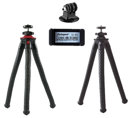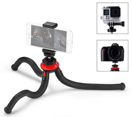 Fotopro Flexible tripod made with high-density rubber-coated Robust legs which makes it more sturdy and durable , It can be bent arbitrarily and attached anywhere. (sloping or slick surfaces). you can wrap it anywhere you want. The phone Tripod with 1/4'' screw is fully compatible with DSLR Cam Gopro Action Cam DSLR machines Nikon Canon G7 Fujifilm Sony RX Panasonic Nikon D610,All GoPro 3/4/5 Hero / GoPro Style Action Cams such as DBPOWER / Garmin Virb XE / SJCAM SJ4000 etc. and the Photography Tripods works well with Samsung Galaxy S9 iPhone X/iPhone8 Google Pixel 2 Samsung Galaxy Note 8 LG V30. The strong flexible legs can easily wrap around the tree branch, fence, bench, bicycle, just shake the tripod as you like. allowing you to capture different angles on your trip. The smartphone tripod with ball head ensures a 360 ° shooting perspective allowing you to capture the perfect shot. You can simply take horizontal or vertical photos by rotating the phone clamp and selecting the cellular mode. The desk tripod stand weighs only 0.28kg and 28 cm tall and max loading 800g. it is easy to storage and travel comfort.
