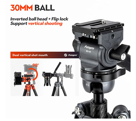 The fluid head on the top enhances resilience when tilting and smooth damping makes it easier to move the lens horizontally. The lower ball head is 30mm in diameter for superb stability and can be used with the 70-200 lens.