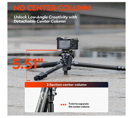 Twist out the axis and switch to 'No Axis' mode for low-angle shooting. After disassembling the center axis, it can provide an amazing low-angle for macro photography. The built-in phone clip on the axis allows you to enjoy phone photography anytime.