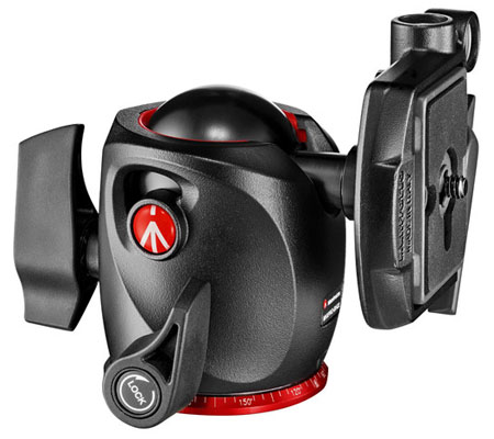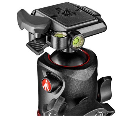 This XPRO Magnesium Ball Head from Manfrotto features an integrated RC2 quick release cam lock and a 200PL-14 Quick Release Plate. RC2 compatible quick release plates such as the 200PL-14 can be removed from the head by pulling the cam lock's spring-loaded lever, which also allows the plate to be instantly reattached. The cam lock also features a safety catch to prevent the 200PL-14, or another compatible quick release plate from accidentally disconnecting.