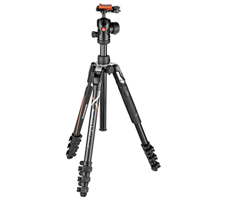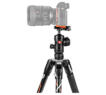 Sporting a 17.6 lb load capacity at a weight of only 3.6 lb, this black and orange Befree Advanced Travel Tripod from Manfrotto is specially designed for the Sony Alpha a7 and a9 cameras, featuring matching graphics and a dedicated quick release plate. It is made of aluminum alloy and reaches a maximum height of 59.1" with its column extended, folding down to 15.7" in length for simplified transport in its included carrying case.