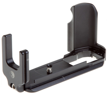 Dedicated to the Olympus OM-D E-M5 mirrorless camera, the BOEM5 Set L-Plate and Grip from Really Right Stuff pairs the fitted BOEM5-L Set L-plate with the custom BOEM5-G Grip Component to afford a versatile mounting platform along with a more robust right-handed grip for improved handling and shooting stability. The L-plate is an Arca-type compatible plate that facilitates easier, more stable switching between horizontal and vertical shooting orientations when working atop a tripod. The L-shape of the plate also benefits shooting in vertical orientation with panorama nodal slides, for maintaining a consistent nodal point, and shooting in horizontal orientation with side-mount gimbal heads.