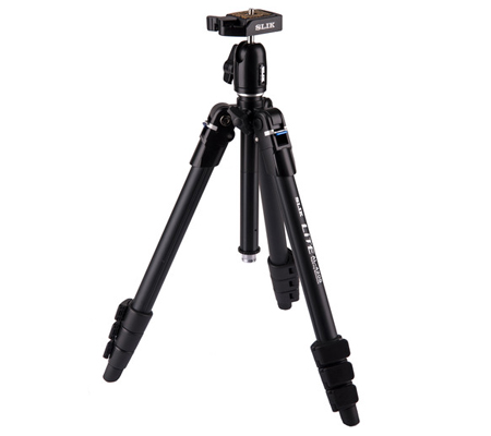 Photographers looking for a full size travel tripod capable of supporting up to 4.4 lb will appreciate the Lite AL-420S Tripod with LED Center Column Flashlight from Slik. The flashlight is useful for setting up gear in low light. It is stored in the center column of the tripod, operates on 2, included AAA batteries, and may be accessed by removing the included center column cap. At only 1.71 lb, the 4 section AL-420S offers a height range of 6.22 to 39.8", and a folded length of 12.2". For compact storage and faster use, the AL-420S features a flip open/close leg inverting mechanism. Your tripod is equipped with a ball head, quick release plate, and comes with a storage case. Aircraft-grade aluminum construction insures low weight, strength, and durability.
