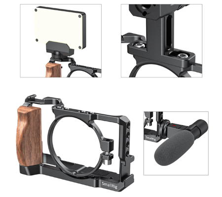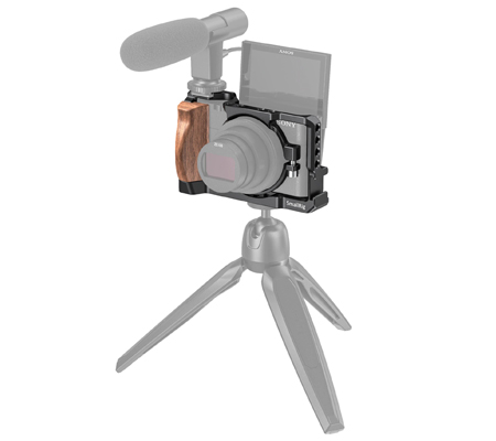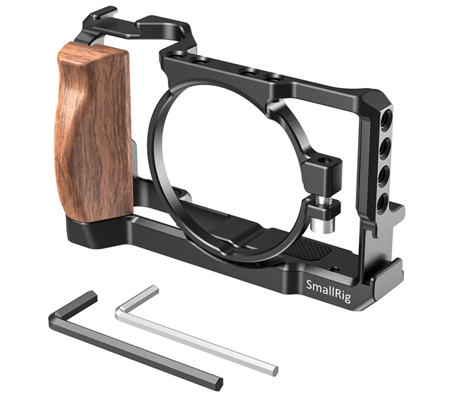 This formfitting Camera Cage from SmallRig protects your Sony RX100 VII or VI camera without impeding access to your camera's functions, displays, ports, or battery. The camera mounts onto the cage via a front lens ring clamp that securely holds the camera. An ergonomic wooden right-side handgrip provides a comfortable gripping surface.