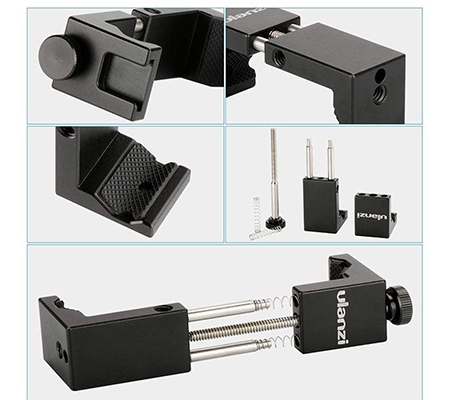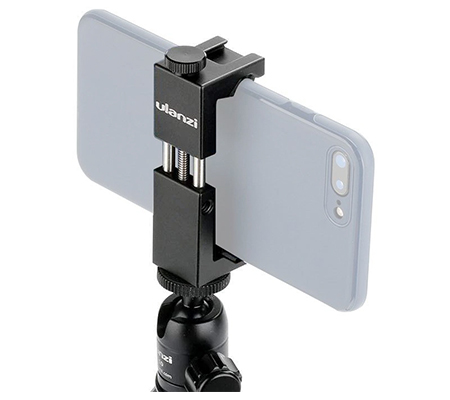 If your smartphone is your camera of choice, the ST-02S Smartphone Tripod Mount from Ulanzi is a handy accessory to help you take clear, blur-free images. The mount attaches to your tripod (not included) via one of two 1/4"-20 threaded screw hole, one for vertical and one for horizontal orientation. You can also rest the mount on a flat surface without a tripod. The smartphone-friendly all-metal construction is durable and long-lasting, featuring top and bottom rubber pads to grip your phone. Smartphone's are quickly mounted and held in place via a center thumbscrew and spring-loaded posts, and can accommodate phones from 2.6" to 3.7" wide. Additional accessories can be added via the built-in cold shoe, such as a microphone or LED light.