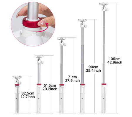 Six-section height, making selfies and group photos more comfortable. Full length of the handle 146.5cm.