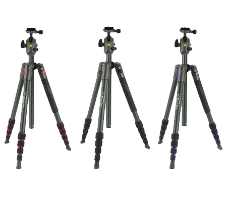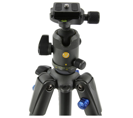 The blue-finished 4.75' Vanguard VEO 2 235AB Aluminum Tripod with Ball Head combines the VEO 2 235AB legs with the BH-50 head. Ideal for hiking and nature work, the tripod weighs 3 lb, and has a load capacity of 13.2 lb. It can extend up to 57.1", and folds down to a compact 15.75". The tripod's 5-section legs feature advanced twist locks and individual spread in 20°, 45°, and 80° positions for easy setup on uneven terrain or spreading out as low as 7" for macro photography. The BH-50 has 3 independent dedicated knobs for lock, panning, and friction control. It includes an Arca-type quick release and a compatible camera plate.