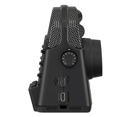 To view your video recording in high definition, you can connect to an HDMI TV using the micro-HDMI type D output. A micro-USB port allows for connection to a computer or iOS device (requires separately available adapter) so you can use the Q2n-4K as a web camera for live streaming, as a USB microphone for podcasts, or as a card reader to transfer recordings (computer connection only).