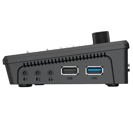 Multi-Inputs Flexibility- Mixer Plus is a compact and full-featured video switcher available in both HDMI and SDI input versions, designed to meet the needs of professional live production environments. The HDMI version comes with four HDMI input ports, while the SDI model features four SDI inputs, both supporting high-quality video signal switching. Each unit offers one program (PGM) output and one AUX output. The AUX output supports multi-view previews as well as customizable video signal outputs, offering exceptional flexibility during live broadcasts.Both versions are equipped with a LAN port that can be used to control PTZ cameras or to connect with our official control software on PC, enabling full access to the device’s functions. Additional audio features include two line-in audio inputs and a headphone output for real-time audio monitoring. The built-in USB 2.0 port allows easy import of media files such as logos, backgrounds, and still images, while the high-speed USB 3.0 port functions as a UVC interface, enabling uncompressed HD video capture directly into OBS and other live streaming software. Whether you prefer HDMI or SDI workflows, Mixer Plus provides a reliable, flexible, and user-friendly solution for multi-camera live production.