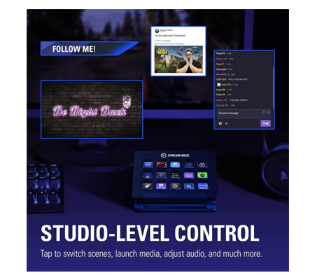 If you're an online streamer who broadcasts using Elgato Game Capture, OBS, Twitch, Twitter, TipeeeStream, XSplit, YouTube, Mixer, and more, streamline your streaming setup using the Stream Deck from Elgato Systems. The Stream Deck integrates your tools and helps to automatically detect scenes, media, and audio sources, enabling them to be controlled with the tap of a key. 15 LCD keys can be programmed to launch an array of actions, while a one-touch, tactile operation allows you to switch scenes, launch media, adjust audio, and more. Streams can also be personalized with GIFs, images, videos, audio clips, and intro and outro graphics. The Stream Deck is compatible with macOS 10.11 and later, as well as Windows 10 (64-bit). Connectivity with your host system is accomplished using an integrated USB 2.0 cable. Finally, an adjustable stand is included to keep the Stream Deck within easy reach.