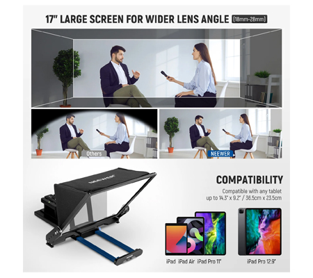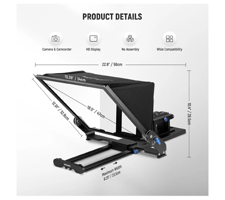 • No Assembly Required- X17 II Teleprompter lets you read every word of your script fluidly while keeping eye contact with the audience—whether you are delivering a speech, wide angle video recording, vlogging, live streaming, giving an online course, or recording a tutorial. The integrated design is ready to use when taken out of the box and requires no assembly at all