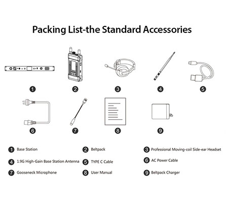 | Weight | Base Station: 6.4 lb / 2.9 kg Beltpack: 0.7 lb / 0.3 kg |