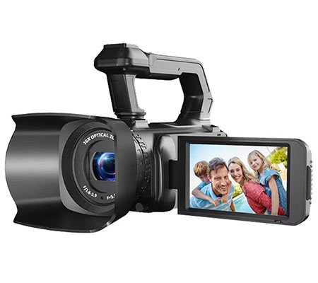 Camcorder ini menawarkan kualitas video 2.7K pada 30FPS dan resolusi foto 48.0 Mega Pixels. Dilengkapi dengan 16X optical zoom, layar sentuh HD IPS 4.0 inci, dan fitur auto focus, serta kemampuan night vision infrared untuk pengambilan gambar dalam kondisi rendah cahaya. Fitur tambahan termasuk remote control wireless 2.4G, perekaman saat pengisian daya, serta fungsi time-lapse dan pause. Mendukung kartu Micro SD hingga 256GB, HDMI, mikrofon eksternal, dan lampu pengisi eksternal, memberikan fleksibilitas maksimal dalam perekaman video dan foto.